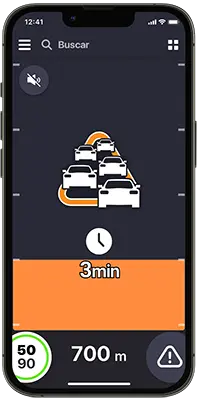 Coyote te indica el tráfico en tiempo real en el mapa y recalcula automáticamente tu itinerario.