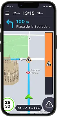 • Los límites de velocidad y los radares fijos o de tramo se actualizan constantemente