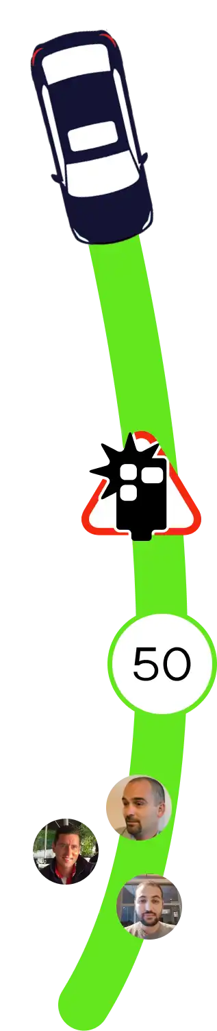 Coyote te avisa en tiempo real de los radares fijos, móviles, tramos, cinturón, móvil y semáforo gracias a una comunidad de automovilistas extremadamente comprometida.